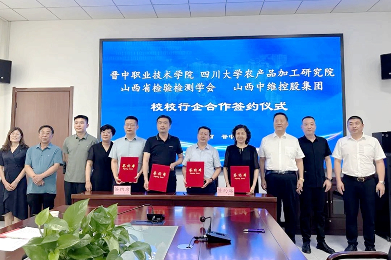 2023年8月18日,晉中職業(yè)技術(shù)學(xué)院、四川大學(xué)農(nóng)產(chǎn)品加工研究院、山西省檢驗(yàn)檢測(cè)學(xué)會(huì)、中維控股集團(tuán)“校校行企”合作洽談會(huì)議暨共建“食品產(chǎn)業(yè)學(xué)院”合作簽約儀式在晉中職業(yè)技術(shù)學(xué)院行政樓舉行。晉中職業(yè)技術(shù)學(xué)院院長(zhǎng)雒衛(wèi)廷、四川大學(xué)農(nóng)產(chǎn)品加工研究院常務(wù)副院長(zhǎng)趙志峰、山西省檢驗(yàn)檢測(cè)學(xué)會(huì)副會(huì)長(zhǎng)張紅、中維控股集團(tuán)董事長(zhǎng)郭秀忠等領(lǐng)導(dǎo)出席,與會(huì)的還有各單位相關(guān)負(fù)責(zé)同志。